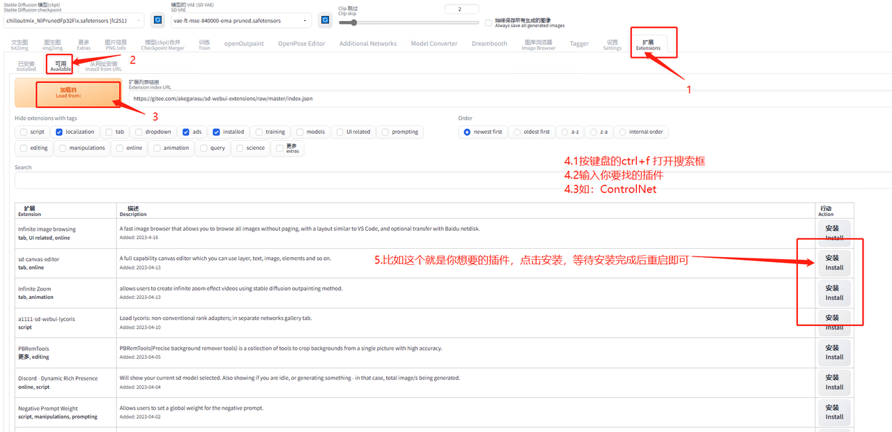 5.8.1 插件安装(以 ControlNet 为例)