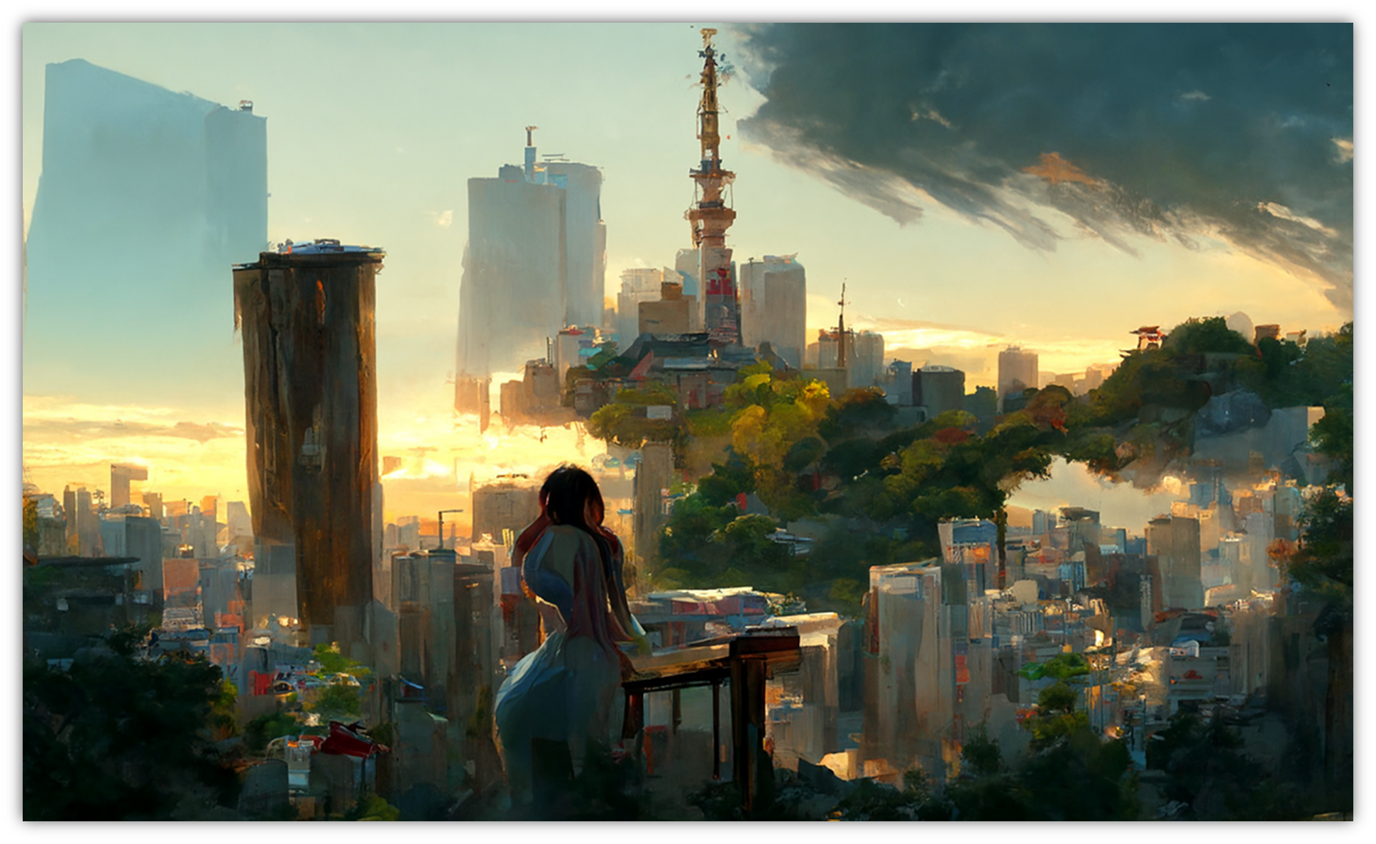 真实的摄影照片往往需要摄影师亲自到场拍摄,AI 绘画的介入,则能让我们通过关键词的组合,产出更自由、不被地域光线等限制的照片。