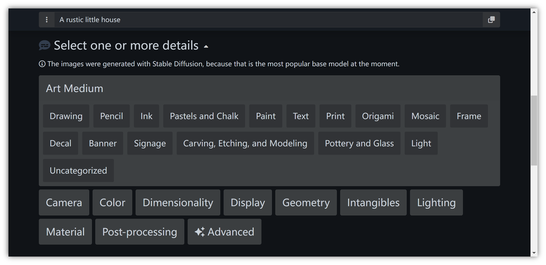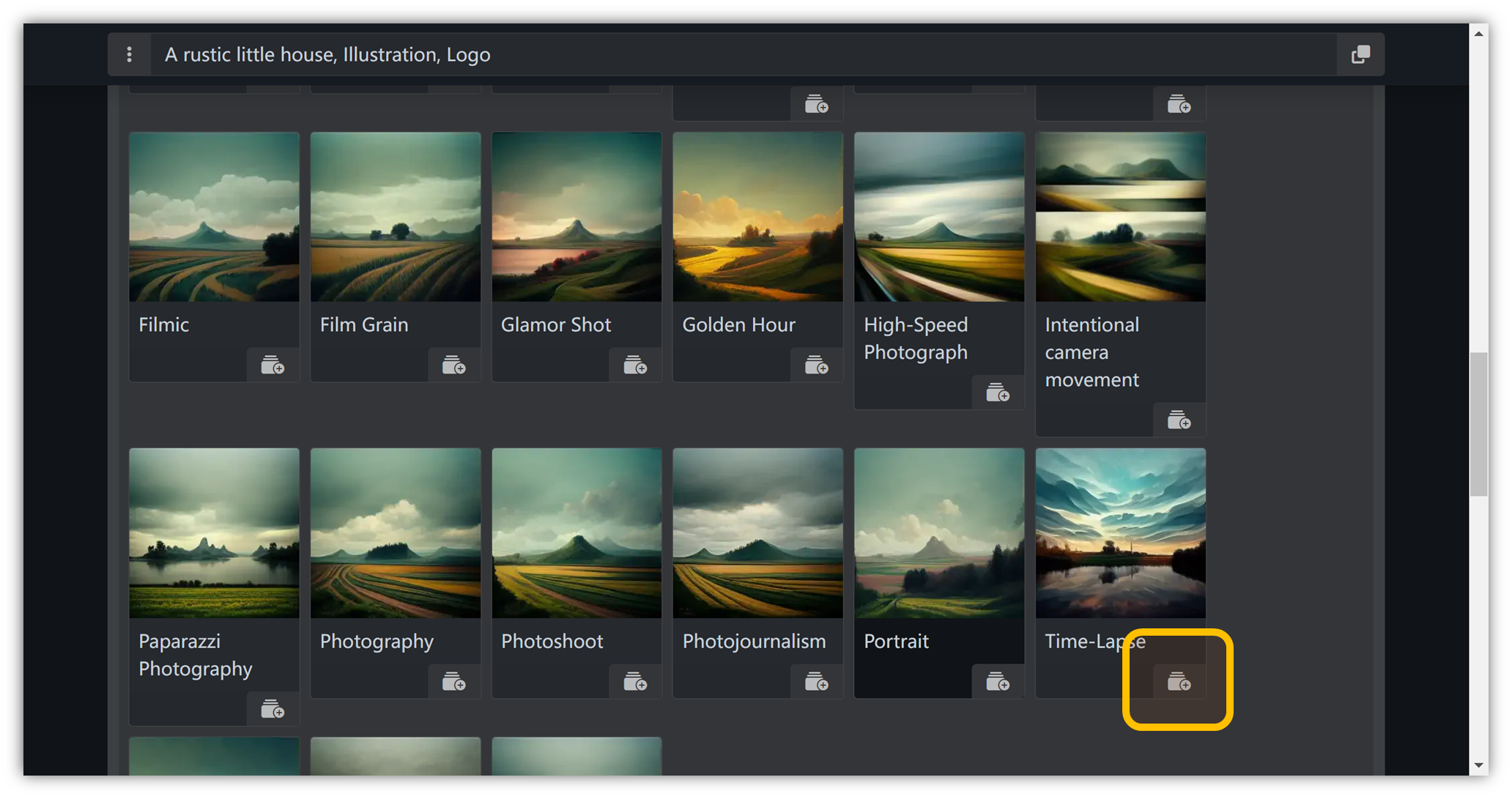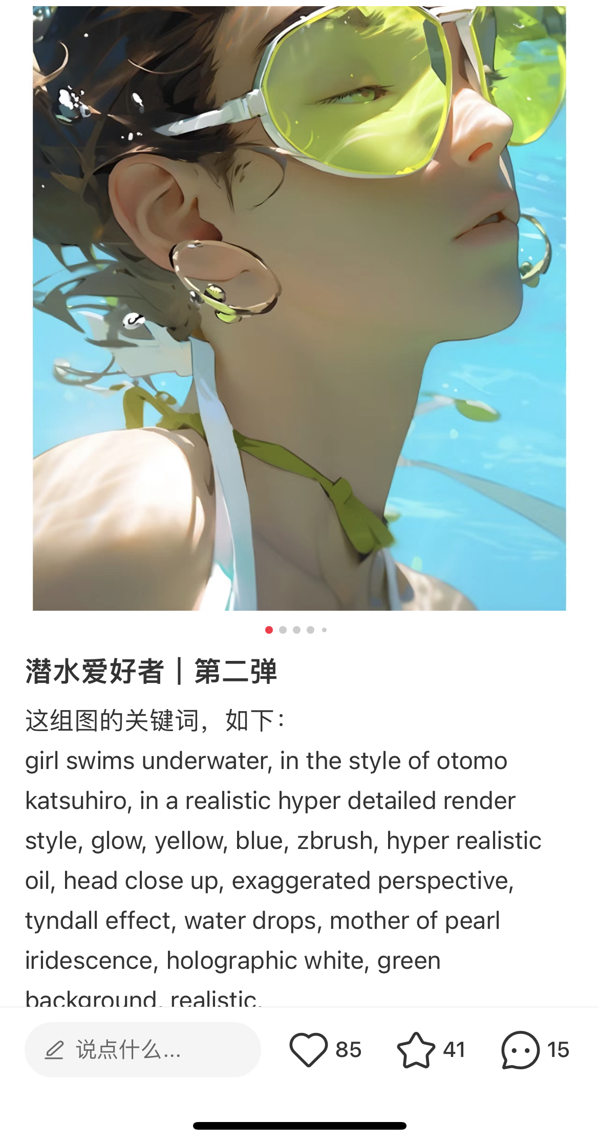 通过写关键词,我们就可以展现出非常有质感的“照片”。比如延时摄影、高速摄影、慢快门、航拍、仰拍、光涂鸦、商业摄影、风光摄影、人像摄影等等。