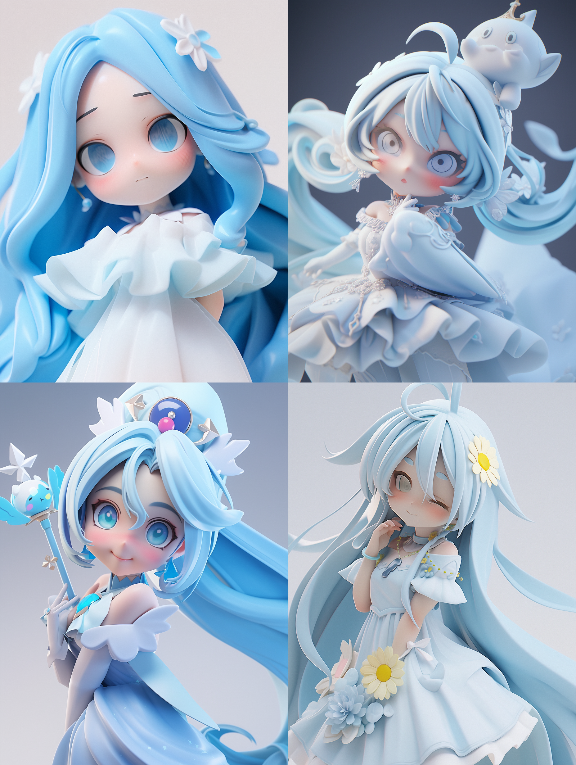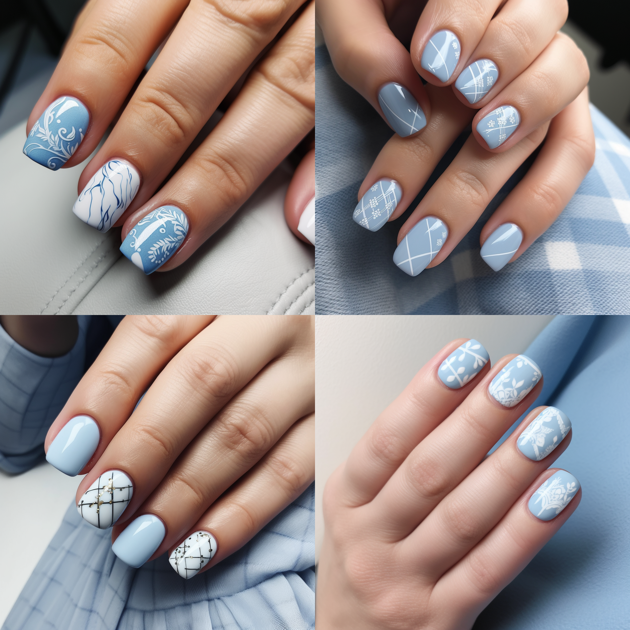 Nail art, powder blue, square, simple white pattern, HD --v 5
