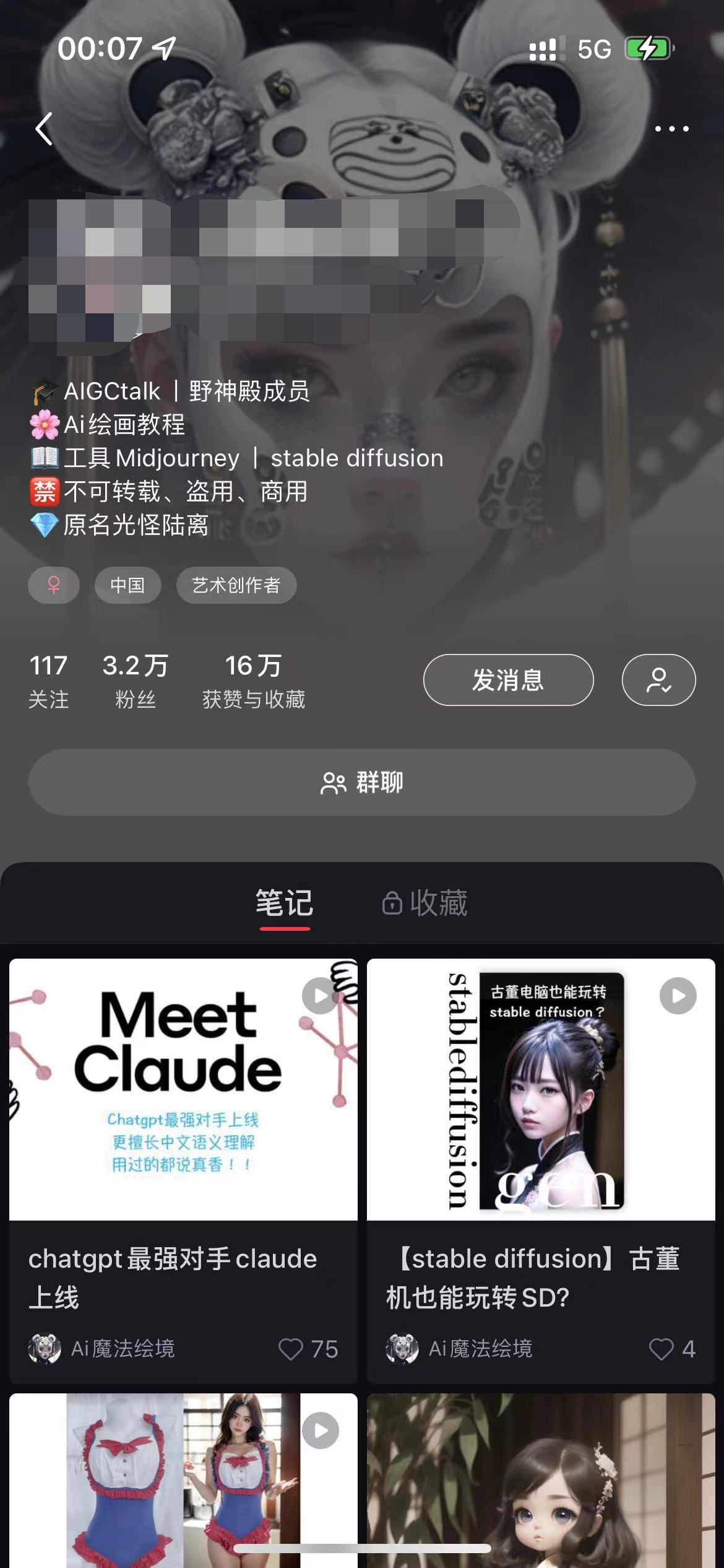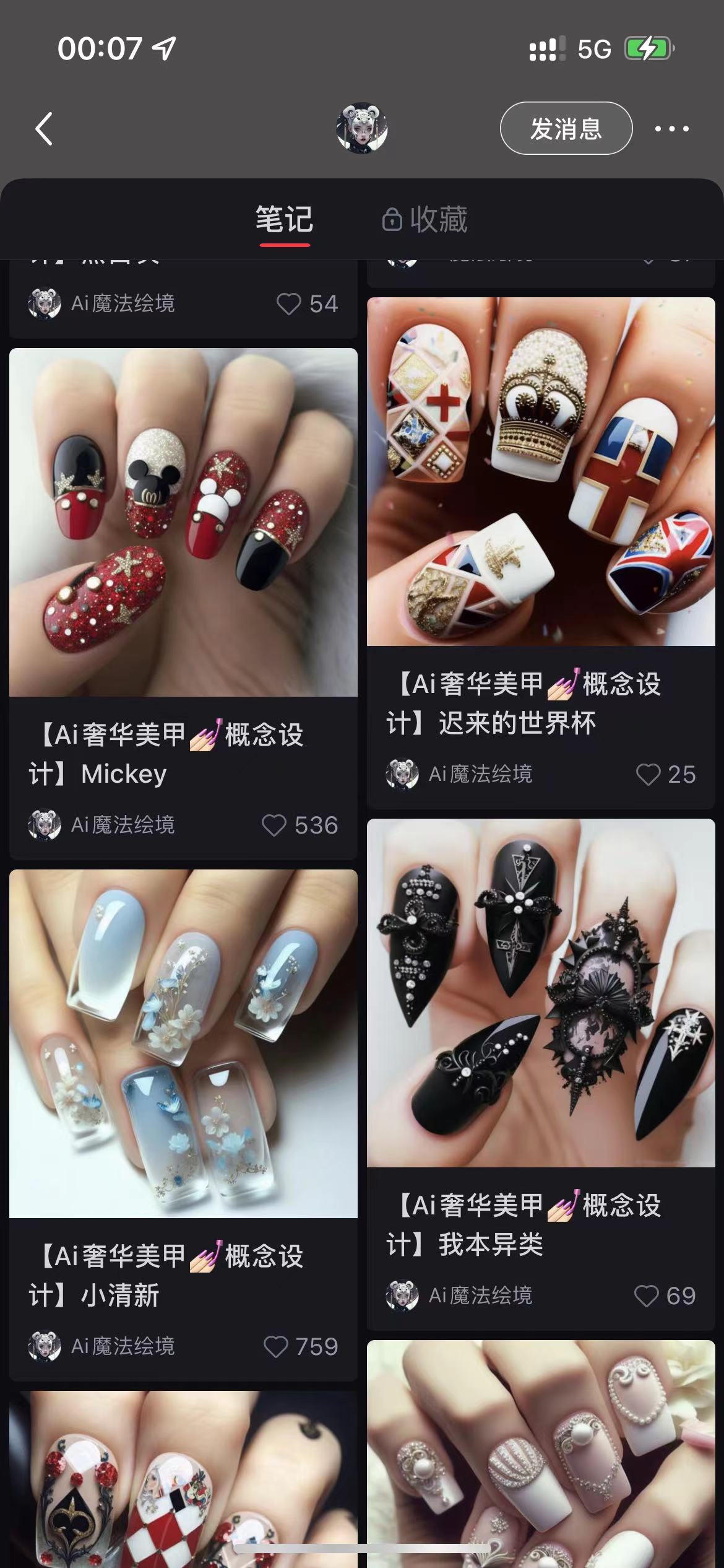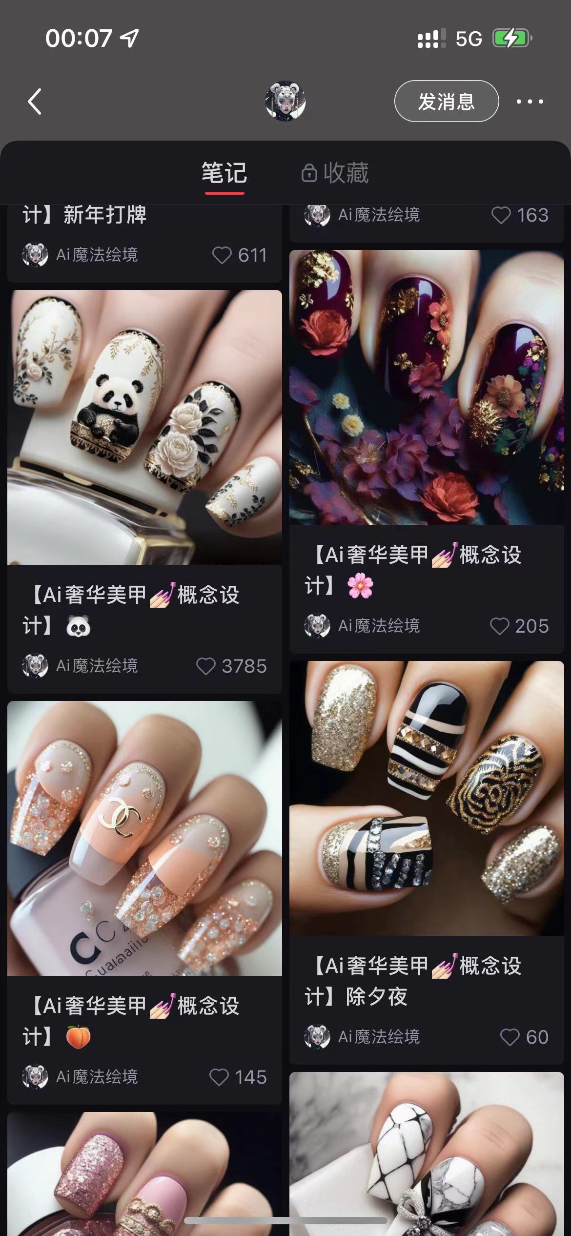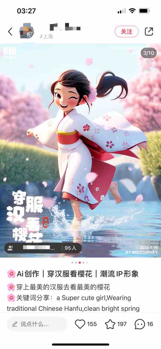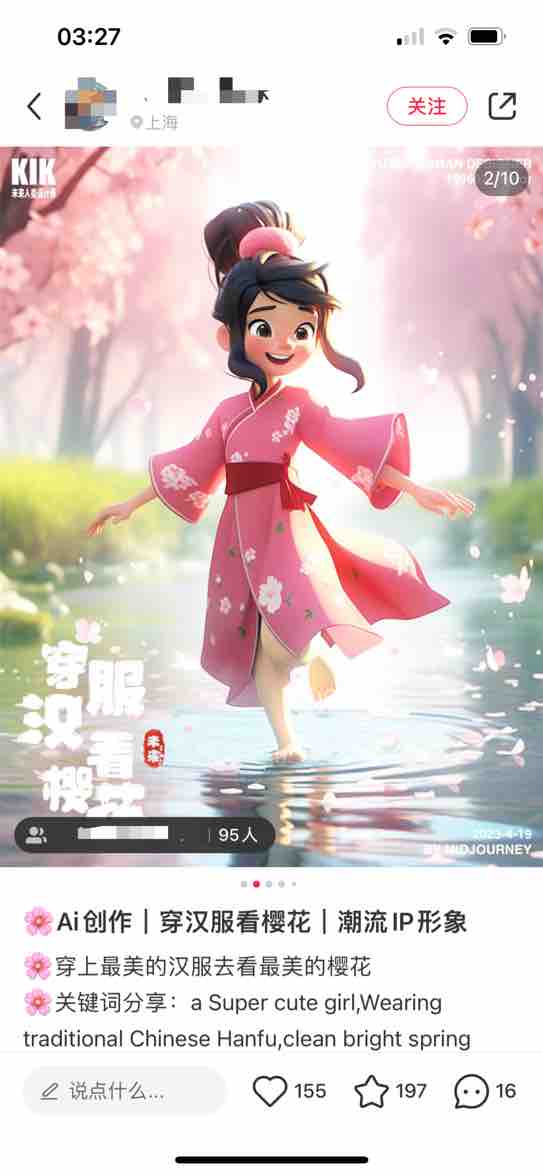 号主 AI 魔法绘境,之前依靠垂直 AI 绘画美甲,涨粉 3W,赞藏 16 万。