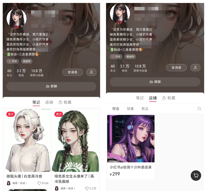 AI 绘画与美甲都是目前较热门的领域,且契合小红书年轻女性用户的兴趣爱好,所以选择这两个方向进行内容打造,容易吸引流量与互动。提供图片作为美甲设计灵感,这满足了很多用户美甲新意和个性化的需求。
