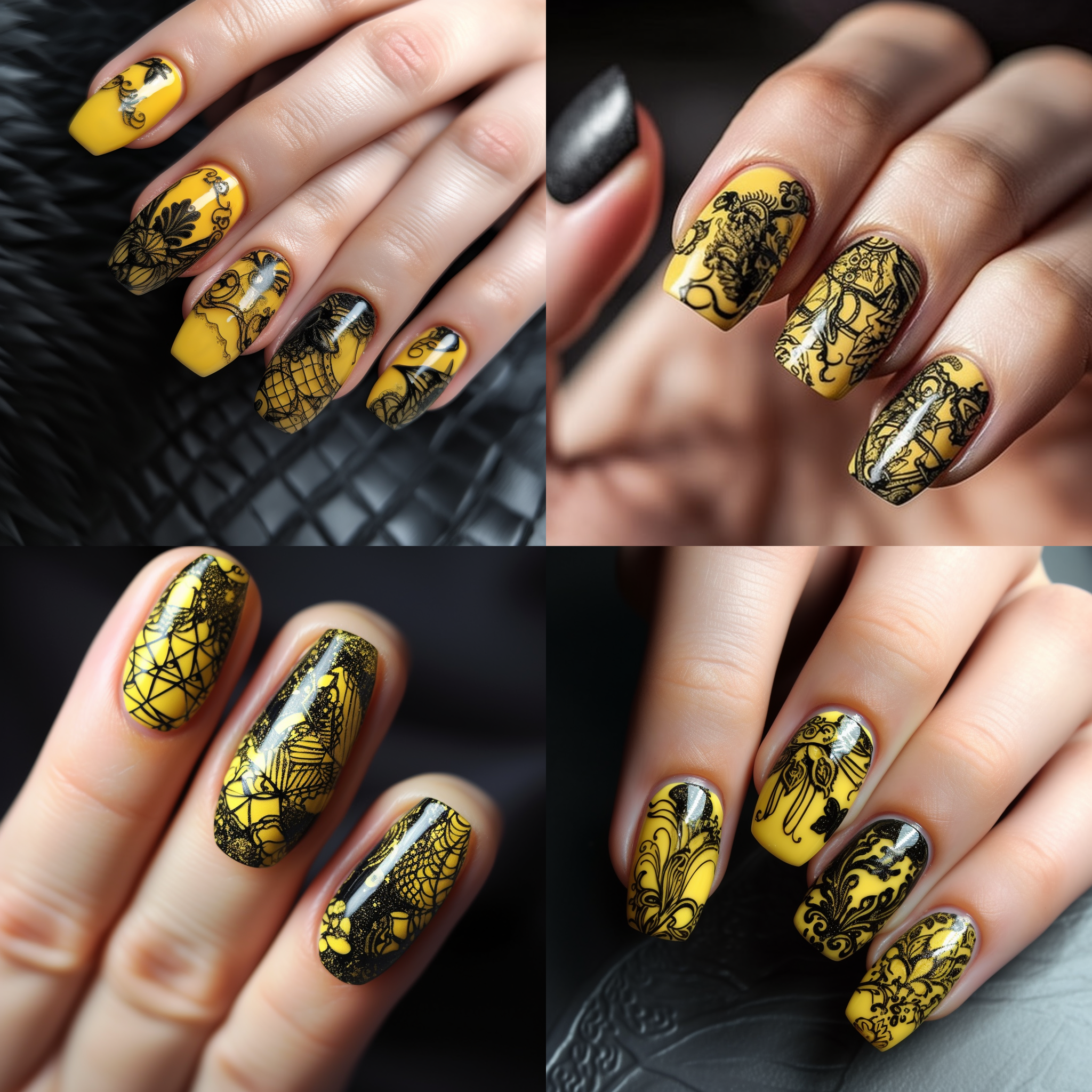 Nail Art, Yellow, Intricate Black Pattern, HD --v 5
