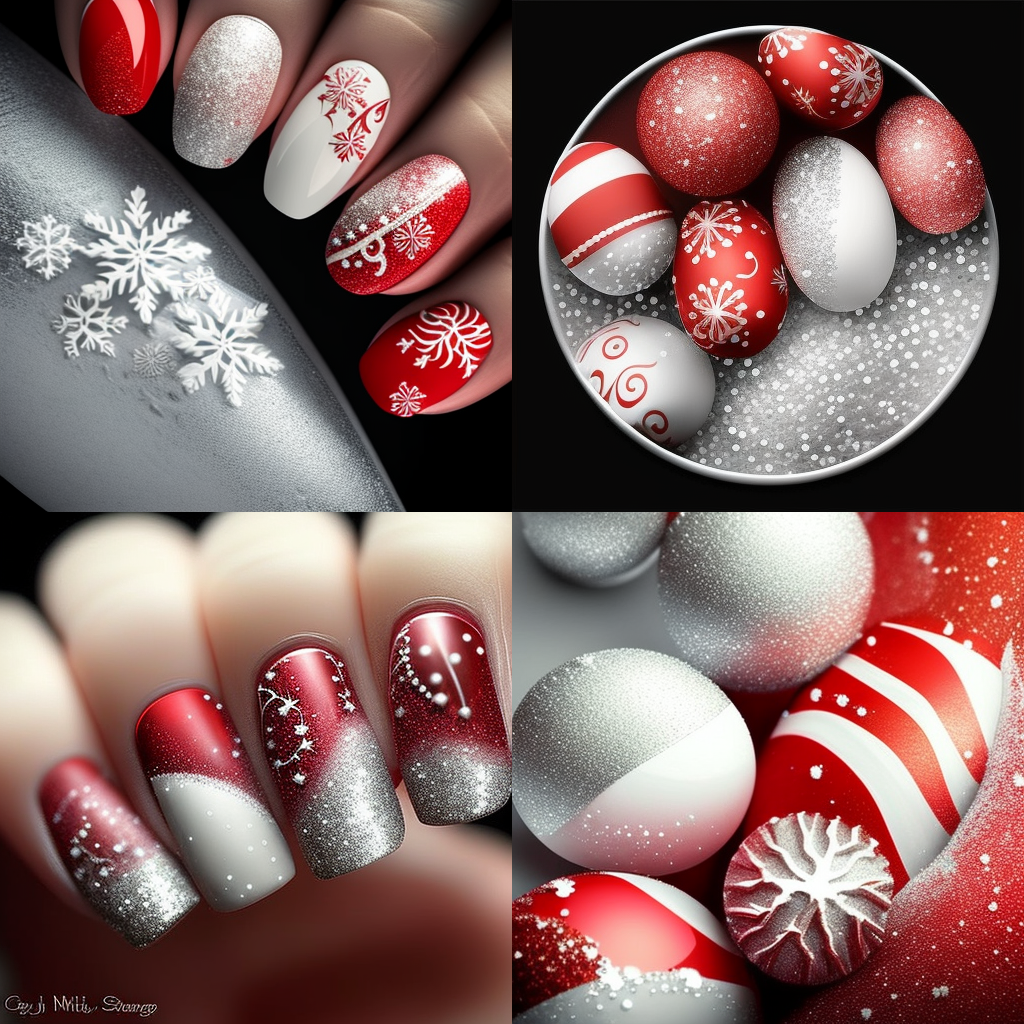 Nail Art, Christmas, white and red, silver powder, glow, best quality --v 4