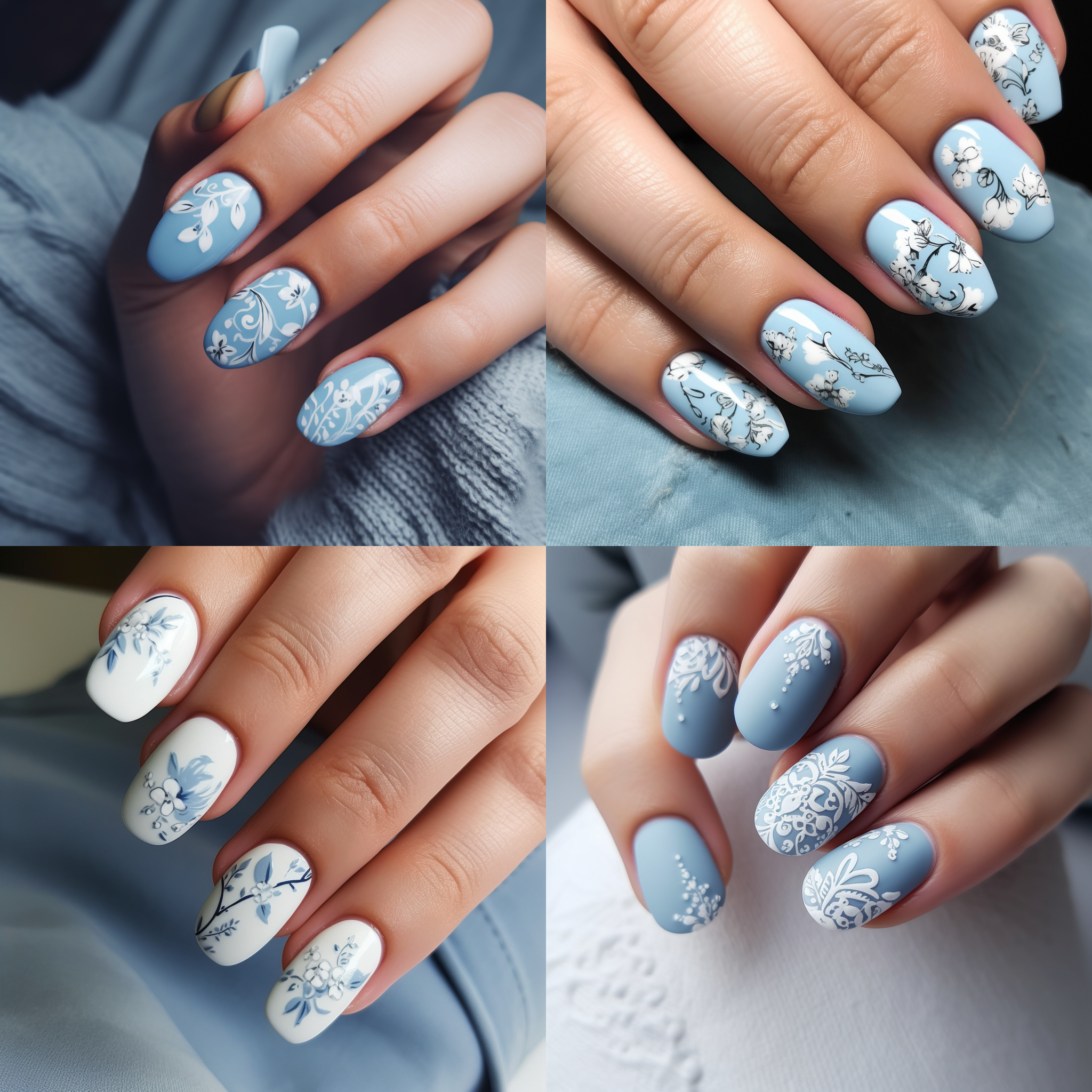 Nail art, powder blue, almond, simple white pattern, HD --v 5