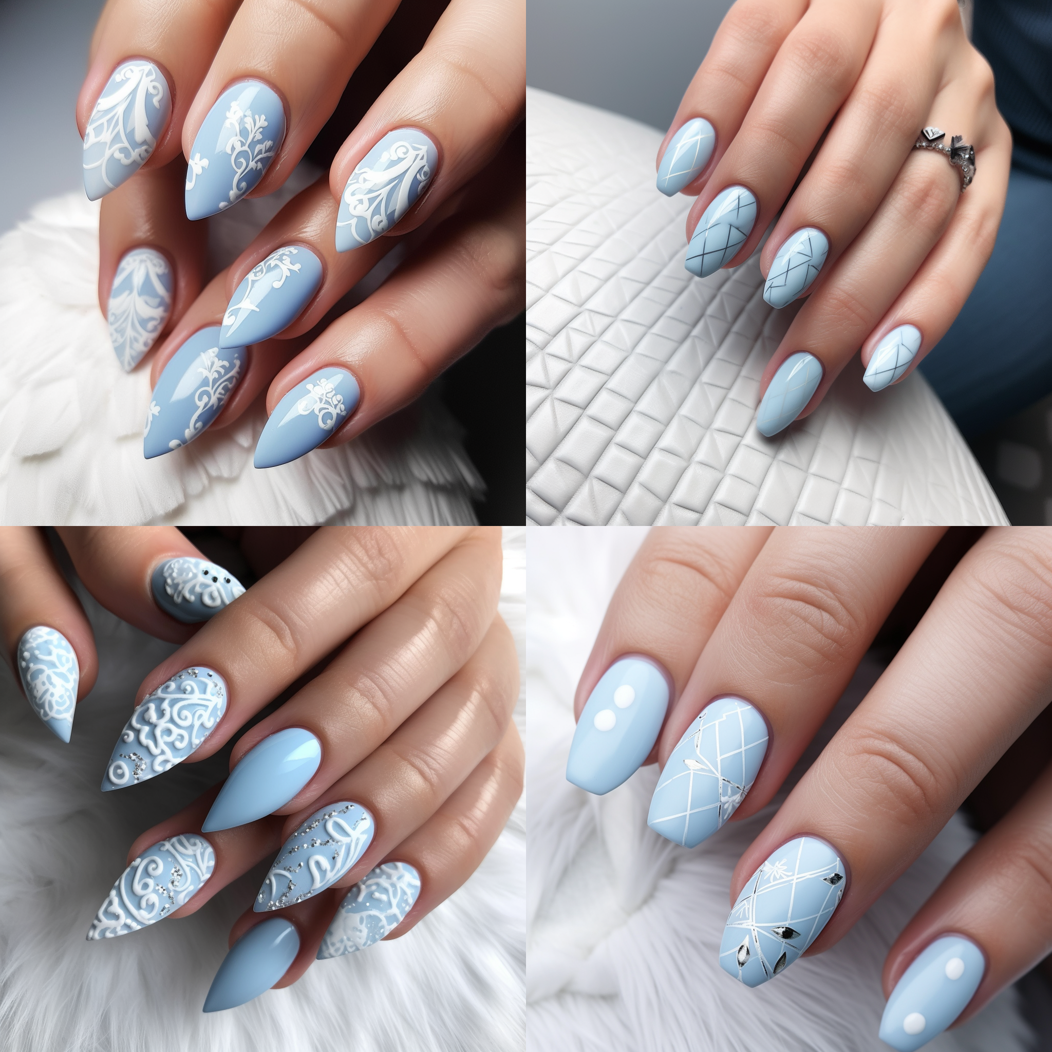 Nail art, powder blue, Stiletto, simple white pattern, HD --v 5