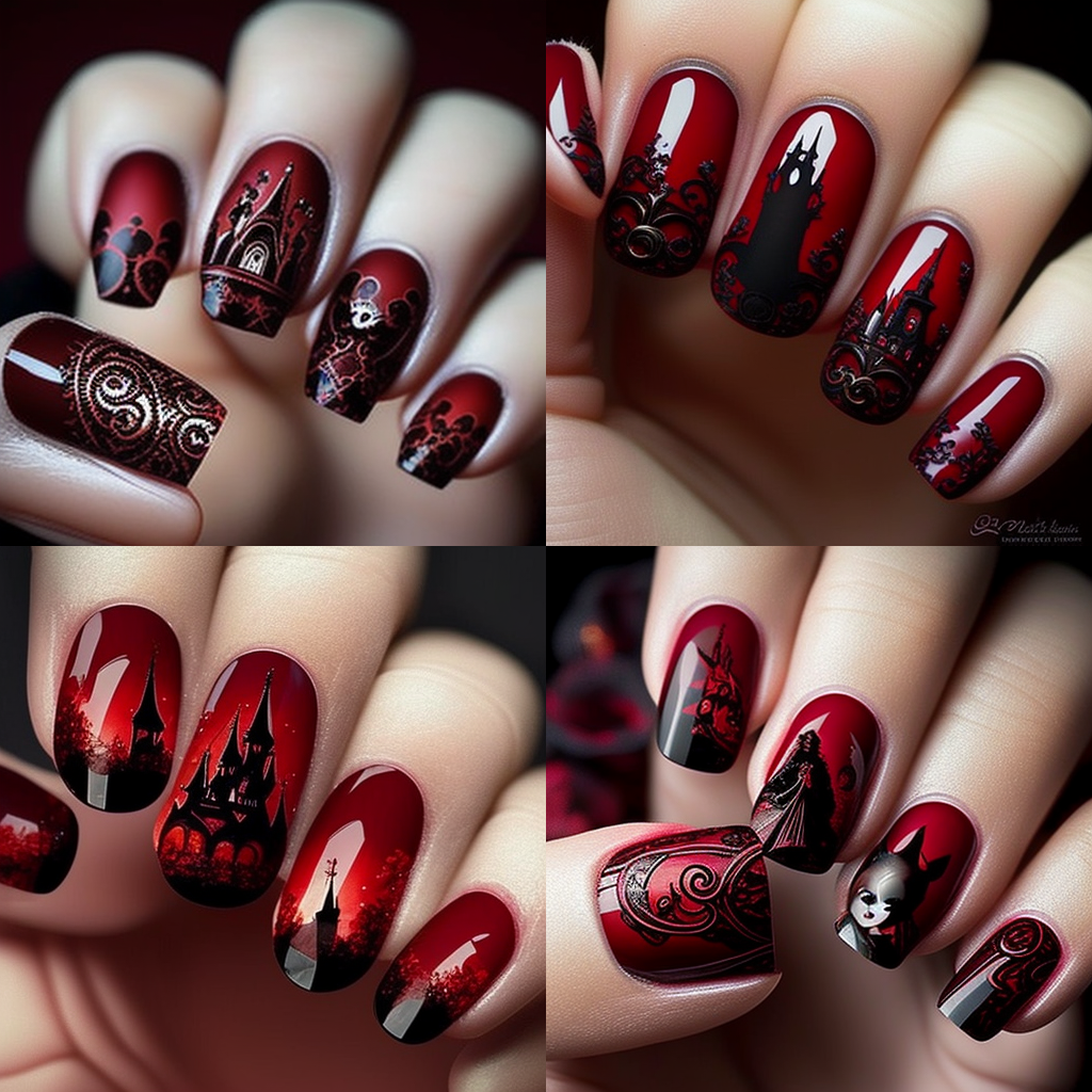 Nail Art, Disney, dark red, best quality --v 4