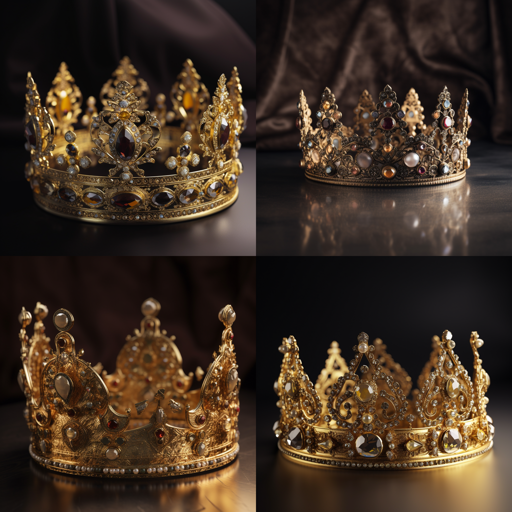 Commercial Photography, Pure Gold Crown, studded with gems, shiny, metallic Sheen, Soft Light, Clean Background, from Museum, HD, --v 5